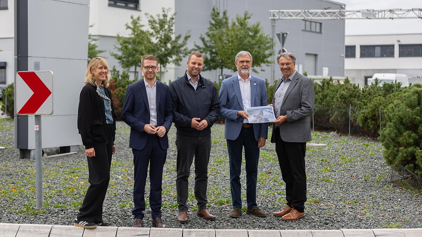 Neben den Fachleuten des FZK waren auch Umweltstaatsekretär Michael Ruhl, HLNUG-Präsident Prof. Dr. Thomas Schmid sowie die Bürgermeister der Kommunen Kelsterbach und Raunheim, Manfred Ockel und David Rendel, vor Ort, um das besondere Projekt vorzustellen. HLNUG-Präsident Schmid erklärt: „Wir freuen uns, dass wir Teil des europaweiten IB-Green-Projektes sind, da wir bereits in den vergangenen Jahren bei unserer Arbeit gemerkt haben, dass Gewerbegebiete in Sachen Klimaanpassung bislang vernachlässigt wurden. Mit fortschreitendem Klimawandel wird dieses Thema immer dringlicher. Umso wichtiger ist es uns, in Zusammenarbeit mit den Pilotkommunen Konzepte und Maßnahmen zu entwickeln, die auf andere hessische Gewerbegebiete übertragbar sind, um so einen wichtigen Grundstein für zukunftssichere und attraktive Gewerbegebiete in Hessen zu legen.“