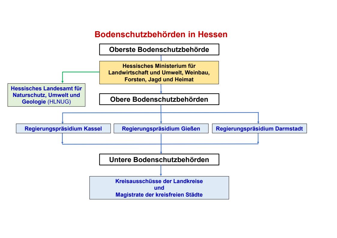 Die hessische Bodenschutzverwaltung gliedert sich in verschiedene Bereiche: