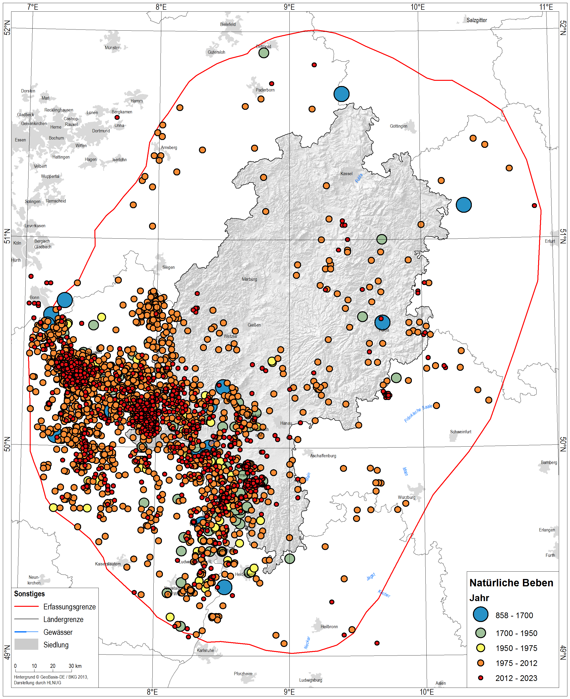 Für den seismischen Katalog Hessen (SKHe2022, Homuth (2022)) wurden verschiedene, verfügbare Erdbebenkataloge und Ausarbeitungen zu Grunde gelegt. Des Weiteren beinhaltet der Katalog Ereignisse aus mehreren wissenschaftlichen Publikationen. In Zukunft wird er halbjährig aktualisiert und der Öffentlichkeit über den Geologie-Viewer des Hessischen Landesamtes für Naturschutz, Umwelt und Geologie zur Verfügung gestellt.