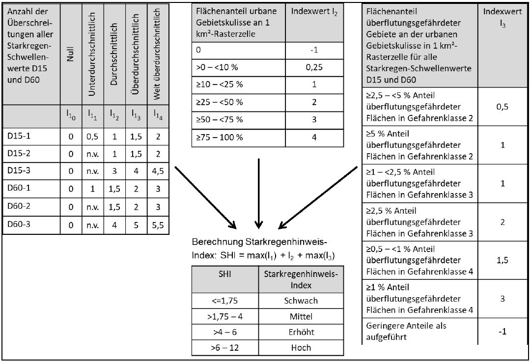 In den Starkregen-Index fließen die folgenden Parameter ein: