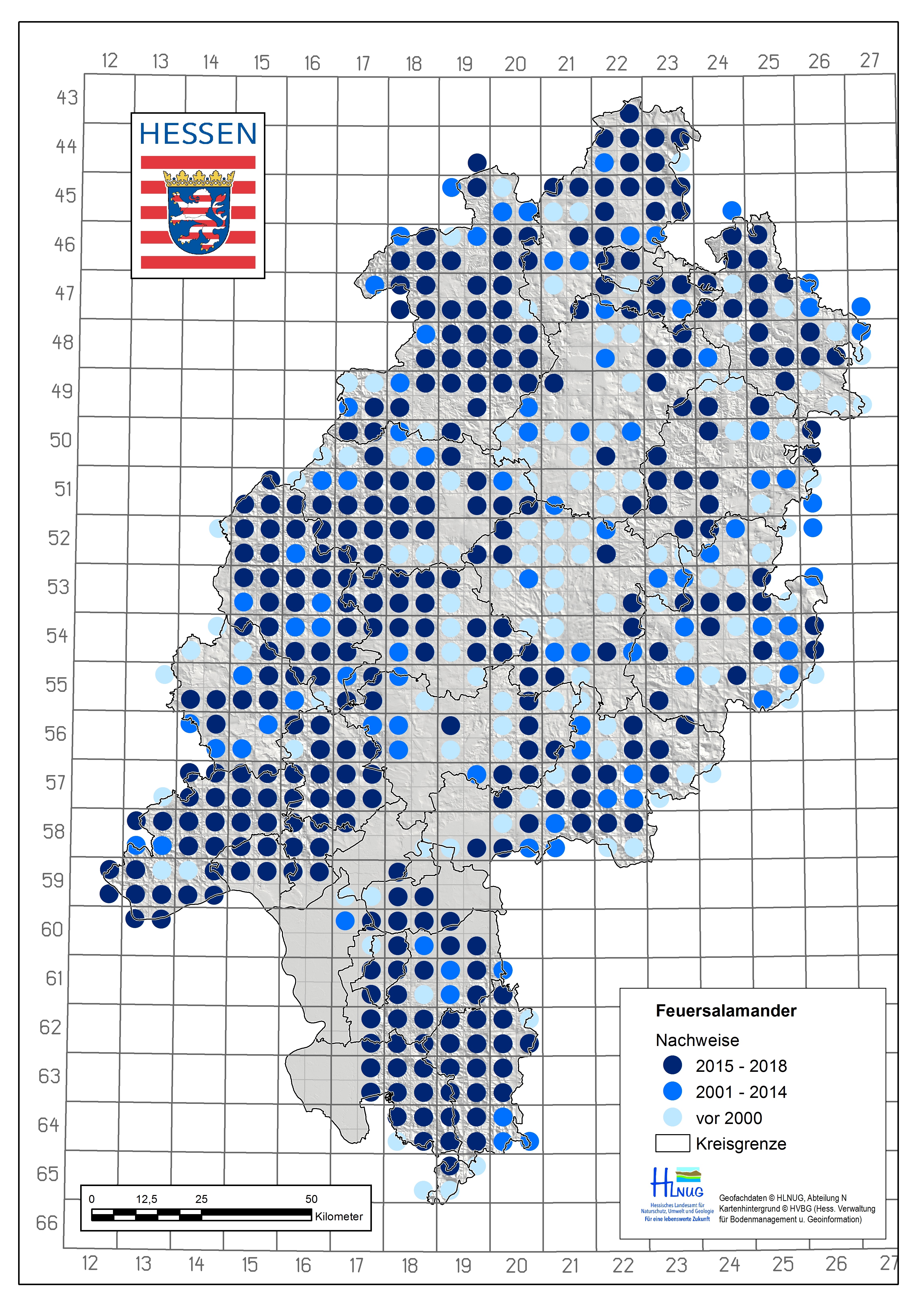 Erste Ausbruchsherde von Bsal wurden vor einigen Jahren in den Niederlanden entdeckt. Dort führte der Hautpilz zu einem massiven Rückgang der Feuersalamander. Auch in Belgien wurden ähnliche Rückgänge aufgezeichnet. Erste Bsal Nachweise in Deutschland wurden 2015 in der Eifel registriert. Neben der Eifel sind im Ruhrgebiet und im Bergischen Land zahlreiche Bsal-Ausbruchsherde dokumentiert. Seit Juni 2020 sind Bsal-Nachweise aus Bayern bekannt. In Hessen wurde Bsal erstmals im Januar 2024 an Feuersalamandern im Freiland nachgewiesen. Damit ist Deutschland aktuell mit mehr als 100 Standorten der „Bsal Hot-Spot“ in Europa.