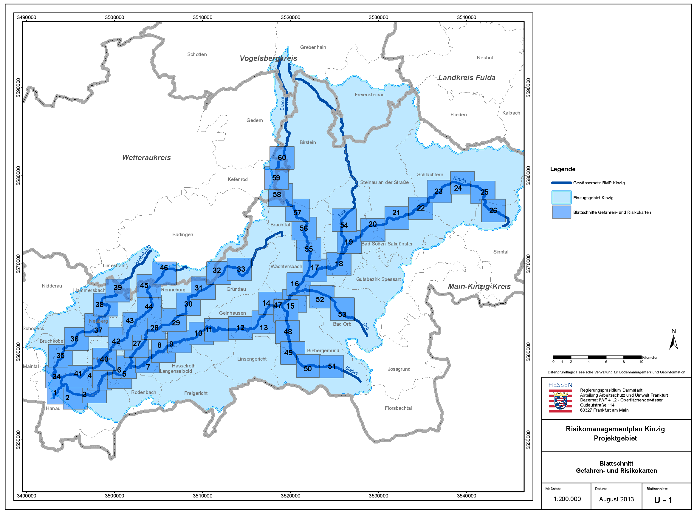 Für den Falle einer Überlagerung bzw. Superpositionierung eines Hochwassers der Kinzig im Mündungsbereich mit einem Hochwasser des Mains, ist beim HWRM-Main eine eigene Gefahrenkarte downloadbar.