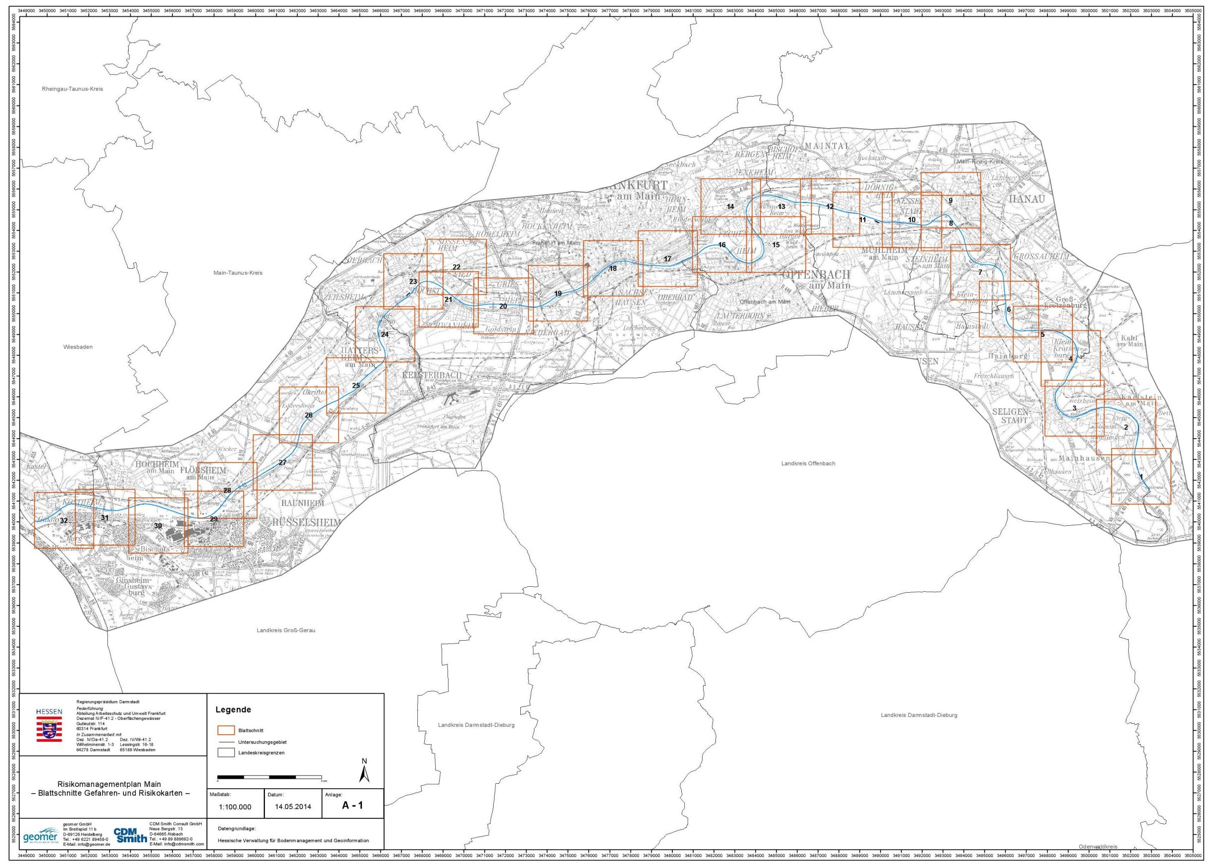 Blattschnitte der Hochwasserrisikokarten