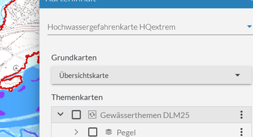 Auch im Hochwasserrisikomanagement-Viewer (HWRM-Viewer, in der aktuellen Version seit Mai 2021) können die Überschwemmungsgebiete zugeschaltet werden. Der HWRM-Viewer ist vorwiegend eine interaktive Anwendung zu den Ergebnissen der Hochwasserrisikomanagement-Bearbeitung in Hessen.